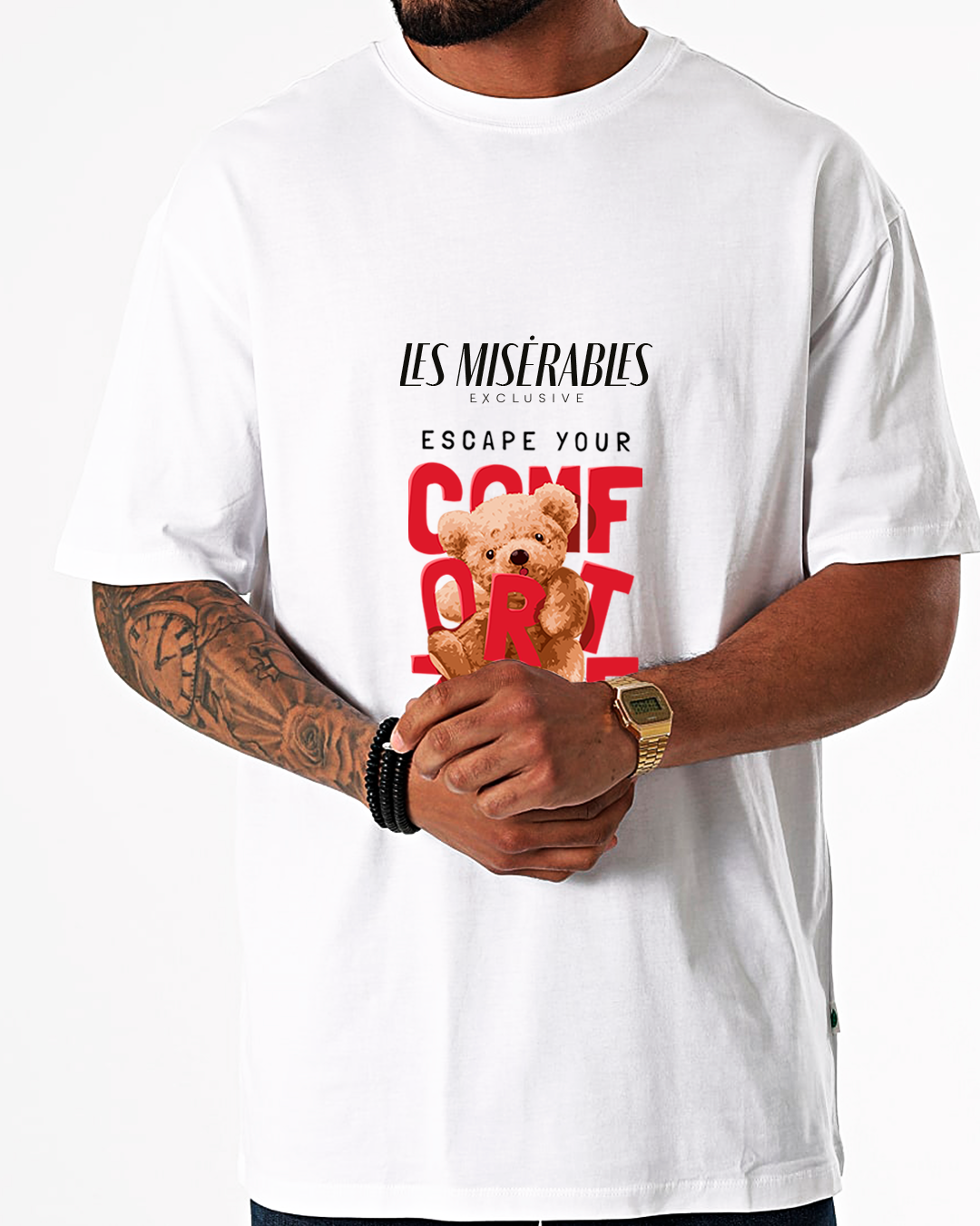 CONFORT ZONE - T-SHIRT 34,99 € Desconto de %. Partilhar TAMANHO S M L XL XXL COR BRANCO PRETO Comprar Contactar 100% ALGODÃO FEITO EM PORTUGAL Marca LES MISERABLES